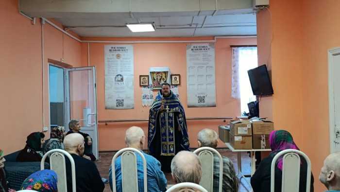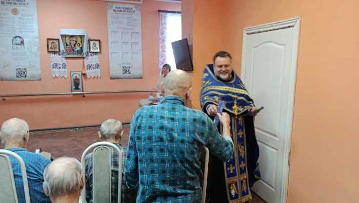 Благочинный приехал в Дом милосердия не с пустыми руками, привёз и раздал постояльцам иконки, книги и журналы, сладкие угощения и миссионерские буклеты. А в холе разместили два баннера, рассказывающие о празднике Масленицы и подготовке к Великому посту.