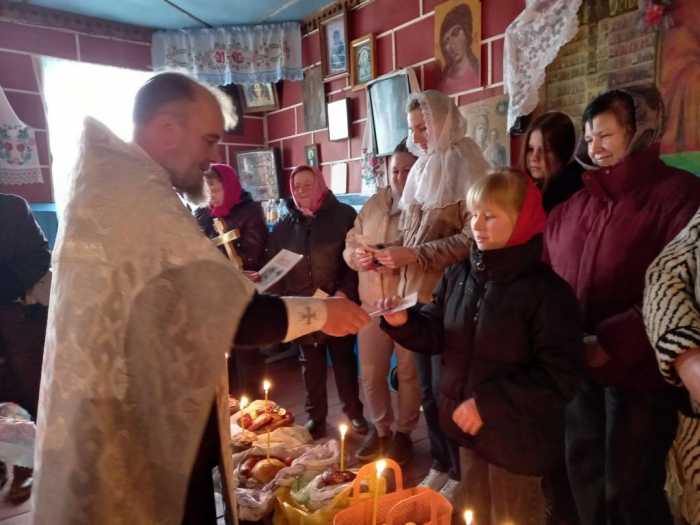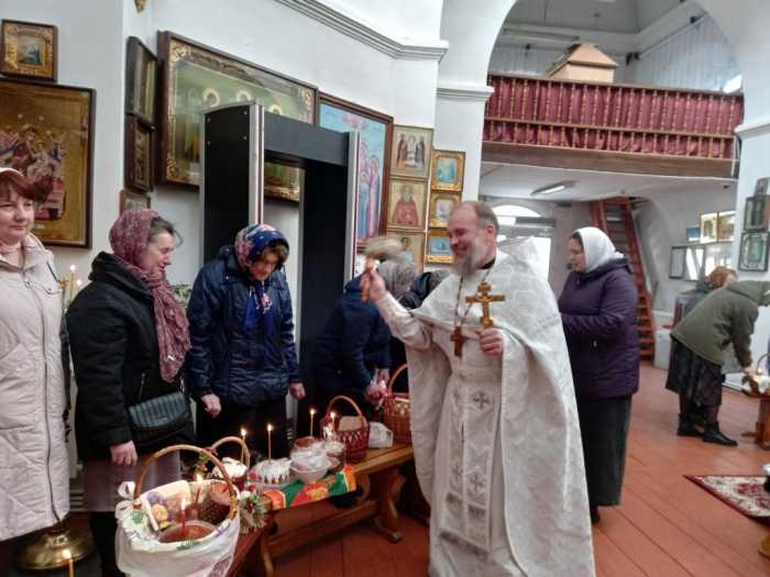Праздничные пасхальные богослужения в Свято – Никольском храме г.Стародуба совершил настоятель храма иерей Едесий Куриленко, также батюшка посетил дополнительный Приход храма в честь Рождества Пресвятой Богородицы в с.Колодезки. По традиции отец Едесий освятил куличи и пасхи, поздравил всех со Светлым Христовым Воскресением и раздал для ознакомления пасхальные листовки, в которых можно узнать всё о празднике Святой Пасхи. С пасхальной радостью батюшка посетил подразделения военнослужащих, которым передал куличи и пасхи, что собрали неравнодушные жители г.Стародуба, прихожане Свято – Никольского храма и храма Рождества Богородицы с.Колодезки, а также неизменные благотворители, добрые и отзывчивые люди – семья предпринимателей Ещенко.