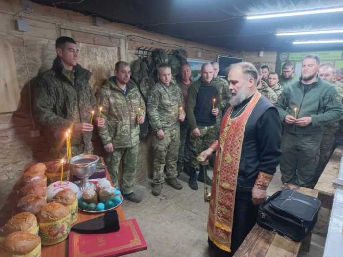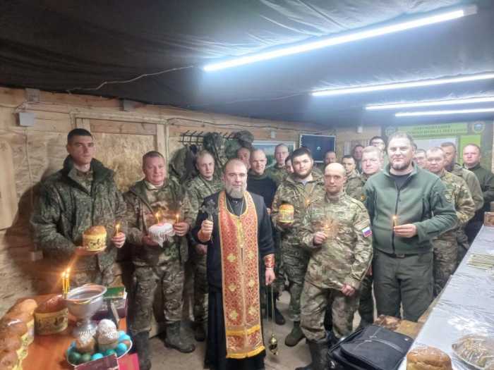 С особой торжественностью проходят пасхальные богослужения, которые совершаются при открытых Царских вратах, и каждый молящийся, видя Великое Таинство Святой Евхаристии, более волнительно и трепетно воспринимает все, что совершается у Святого Престола и всем сердцем, всей душой возносит свои молитвы ко Господу за родных и близких, за болящих и страждущих, за Святую Русь, власть, народ и её воинов.