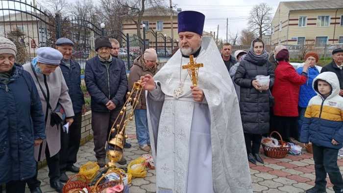 Также отец Олег провел обряд освящения куличей в Страстную субботу – накануне Пасхи. Во время освящения и на праздничной службе волонтёры провели просветительскую акцию, раздавая буклеты, о раскрытии смысла христианской Пасхи - «Пасха - торжество жизни над смертью», посвящённую наступающему празднику Светлого Христова Воскресения.